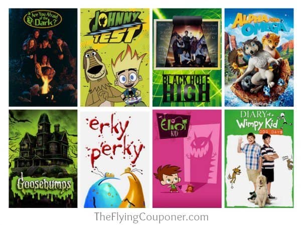 For you bigger kids: Are You Afraid of the Dark?, Johnny Test, Black Hole High, Alpha and Omega, Goosebumps, Erky Perky, Eliot Kid, Diary of a Wimpy Kid: Dog Days.