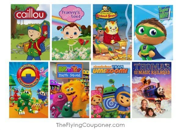 For your little ones: Caillou, Franny’s Feet, The Busy World of Richard Scarry, Super Why!, Animal Mechanicals, Monster Math Squad, Team Umizoomi, and Thomas and the Magic Railroad.